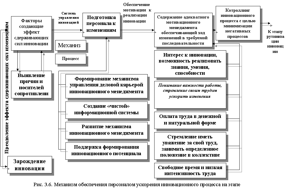 - освоение нововведения сопровождаемое изменением делового персонала к нововведению и обеспечения персоналом выполнения инновационной стратегии;