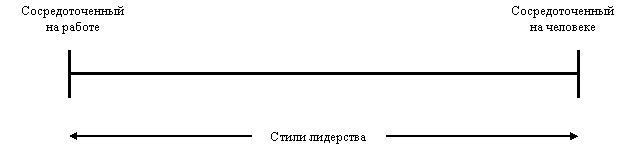 Рэнсис Лайкерт и его коллеги в Мичиганском университете разработали альтернативную систему, сравнивая группы с высокой производительностью труда и группы с низкой производительностью в различных организациях. Они считали, что разницу в производительности может объяснить стиль лидерства. Аналогично континууму по теориям “Х” и “Y” МакГрегора, руководители групп с высокой и низкой производительностью классифицировались по континууму, находящемуся в пределах от одной крайности - сосредоточенные на работе (теория “Х”), до другой - сосредоточенные на человеке (теория “Y”). Этот континуум представлен на Илл. 2.