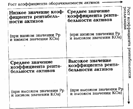 С помощью указанной матрицы можно выявить основные резервы дальнейшего повышения эффективности хозяйственной деятельности торгового предприятия (роста коэффициента рентабельности использования его активов) за счет оптимизации отдельных экономических и финансовых показателей в предстоящем периоде.