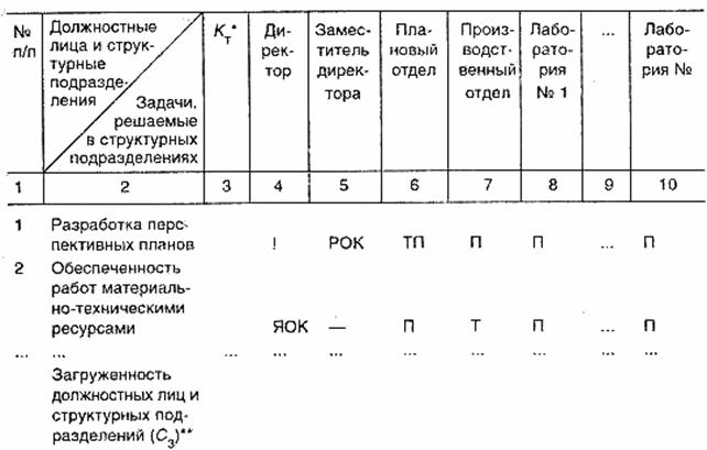 Количество символов, обозначающих отношение структурных подразделений и служб к решению конкретных задач управления, а также их ' содержание, могут быть изменены, так как определяются подходом к деятельности по управлению и условиями функционирования реальных систем управления, которые являются объектами моделирования. В табл. 5.2 приводится фрагмент матрицы РАЗУ.