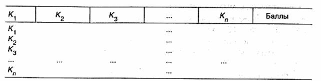 Таблица 5.3. Форма матрицы предпочтений (парных сравнений)
