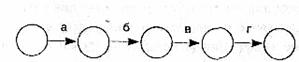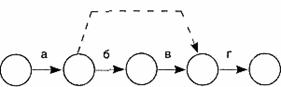 Правило организационно-технологических связей между работами. В сетевой модели учитывается только непосредственная связь между работами либо связь через зависимость. На рис. 3.6 показаны работы «а», «б», «в», «г». Работе «г» предшествует только работа «в», но если необходимо, например, показать, что работе «г» предшествует также работа «а», то модель должна быть изображена по-другому (рис. 3.7).