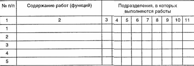 Таблица 5.1. Примерная форма матрицы распределения функций управления между подразделениями