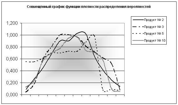 В данной Приведённые выше вычисления определяют выбор именно продукта №2, т.к. он имеет более высокую вероятность получения прибыли и более низкий коэффициент риска в сравнении с продуктом № 10 в интервале продукта № 3 (более чем в три раза по вероятности)