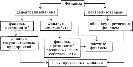 Современная финансовая система государства состоит из децентрализованных и централизованных (общегосударственных) финансов, которые в свою очередь включают государственные и частные финансы.