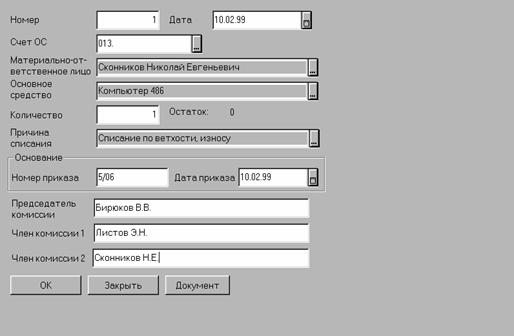 Количество. Автоматически высвечивается количество, числящееся на балансе. Если по выбранному ОС ведется групповой учет и списываются не все ОС, то число может быть исправлено на меньшее.