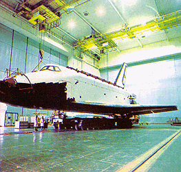 Размерность ОК и отсутствие на период сборочных работ по кораблю транспортных средств для доставки корабля в полной комплектации с завода-изготовителя на технический комплекс привели к необходимости проведения сборочных работ поэтапно. На заводе-изготовителе - Тушинском машиностроительном заводе - проводилась сборка планера массой не более 50 т, которая лимитировалась грузоподъемностью самолета 3М-Т. Планер транспортировали водным путем по реке Москве до г. Жуковский, где его грузили на самолет 3М-Т, а затем воздушным путем перевозили на посадочный комплекс полигона Байконур, где его после перегрузки на автомобильное шасси доставляли в монтажно-испытательный корпус. Планер транспортировали практически без орбитальных систем и отдельных агрегатов (кабины экипажа, вертикального оперения, шасси), на нем было установлено только 70% теплозащитного покрытия. Таким образом, в МИК ОК необходимо было развернуть сборочное производство и организовать процесс поставки необходимых комплектующих изделий. Планер первого летного орбитального корабля был доставлен на космодром Байконур в декабре 1985 года. Отправке планера первого летного корабля "Буран" на технический комплекс предшествовала большая подготовительная работа. В отличие от ракеты-носителя "Энергия", для которой использовались техническая позиция и основная часть стартового комплекса от ракеты-носителя Н1, для ОК "Буран" все надо было создавать заново: все сооружения технического комплекса, на которых должны быть проведены досборка корабля и укомплектование его бортовыми системами, электрические испытания; посадочный комплекс с сооружениями, обеспечивающими обслуживание корабля после посадки, и командный диспетчерский пункт. Работы по созданию всех сооружений велись медленно, и к моменту прибытия планера первого летного корабля основная техническая позиция корабля (площадка 254) была готова только на 50-60%. Из пяти залов, необходимых для сборки и испытаний корабля, можно было сдать в эксплуатацию только один (зал 104). Однако даже он в январе 1986 года использовался как складское помещение. В нем временно разместили наземно-испытательное оборудование орбитального корабля (около 3000 ящиков, массой не менее одной тонны каждый), которое предстояло в кратчайшие сроки доставить в пультовые, смонтировать и провести пусконаладочные работы. Для проведения испытаний необходимо было ввести в строй более 60 пультовых и около 260 помещений. Не были готовы к работе площадка для огневых контрольных испытаний объединенной двигательной установки, монтажно-заправочный корпус, специализированные площадки для работы с кораблем на посадочном комплексе. Решение об отправке планера первого летного корабля при такой низкой готовности технической позиции было принято после многократных обсуждений. Отправка должна была оживить работы на космодроме Байконур. Работы с ракетой-носителем "Энергия" опережали работы по кораблю, так как этому направлению оказывалось, как и в предыдущие годы, более пристальное внимание на всех этапах работ. К этим работам более тяготело и руководство Министерства. В январе 1986 года во время полета на космодром министра О.Д.Бакланова с большой группой руководителей отраслей смежных министерств, генеральных и главных конструкторов, участвовавших в создании ком