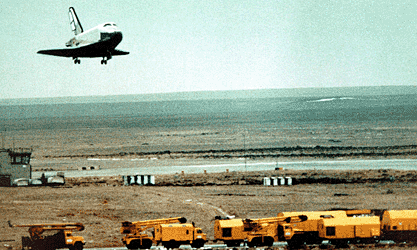 Возвращение орбитального корабля "Буран" из первого космического полета