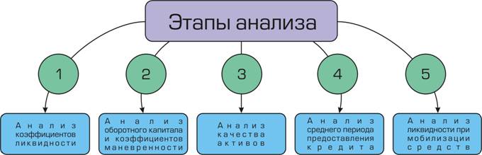 Необходимо отметить, что показатели ликвидности необходимо анализировать в несколько этапов по степени важности (рис. 2) и при этом на каждом этапе могут быть выявлены нарушения стабильности.