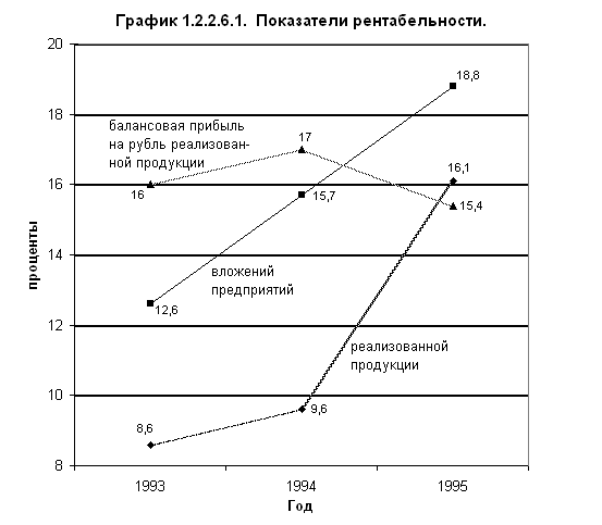 За период возросла, также, рентабельность производственных фондов, рассчитанных по балансовой прибыли, с 8,05 % в 1994 г. до 23 % в 1996 г.