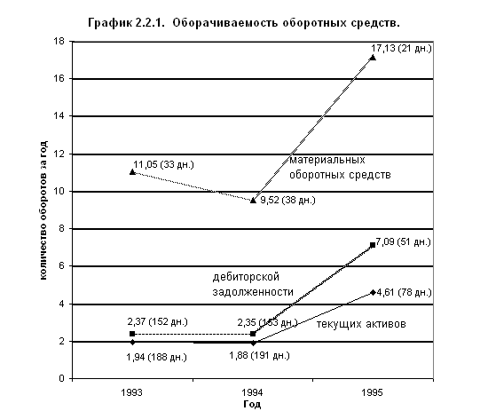 Общая сумма оборотных средств за 1996 год выросла на 1 735 870 тыс. руб., или на 21,4 %. По прежнему остается наибольшей доля дебиторской задолженности 62,7 %, хотя она сократилась за 1996 г. на 16,6 %.