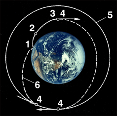 3 - отделение разгонного блока второй ступени от ОК "Буран";