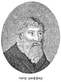 Работы в типографии идут успешно, и в дело принимается (в 1452 году) в качестве подмастерья молодой Петр Шеффер, из Гернсгейма, чрезвычайно способный человек, бывший в Парижском университете в 1449 году переписчиком (каллиграфом), быстро не только усваивающий во всем объеме искусство Гутенберга, но и вносящий, вероятно, усовершенствования. Фуст, считая более выгодным изгнать из дела Гутенберга, может быть, поссорившись с ним, предъявляет требование о возврате денег; но все полученные суммы вложены в дело, и Гутенберг вынужден снова предстать перед судом, который не считаясь, конечно, с моральными правами Гутенберга - решает дело в пользу Фуста, и 6 ноября 1455 года вся типография отнимается у Гутенберга и переходит в руки Фуста и Шеффера. В пользовании Гутенберга остается только один из комплектов отлитых шрифтов, принадлежав-ший Гутенбергу до компании с Фустом (которым печатались Донаты).