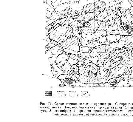 При проведении аэрокосмической съемки в целях создания или обновления топографических карт, а также для решения ряда задач комплексного изучения и картографирования природных условий и ресурсов необходимо иметь следующую информацию о состоянии вод исследуемой территории: во-первых, когда наблюдается фаза водности, уровни воды при которой находятся в пределах картографического интервала высот; во-вторых, какова продолжительность стояния уровней воды (число дней в году) в картографическом интервале высот. Последняя важна для оценки категории сложности съемки.
