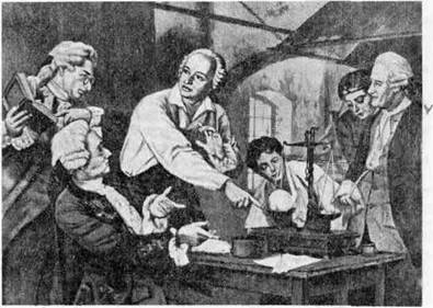 В многочисленных исследованиях и высказываниях, характеризующих существо процессов движения в их взаимосвязи с материей, Ломоносов значительно опережал выводы современного ему естествознания. В его работах были сделаны первые шаги в раскрытии диалектики природы, которую он пытался рассматривать не как застывшую, окостенелую систему, а в процессе непрерывного развития. «Тела,— писал он,— не могут ни действовать, ни противодействовать взаимно без движения . Природа тел состоит в действии и противодействии . а так как они не могут происходить без движения . то природа тел состоит в движении, и, следовательно, тела определяются движением»24. Однако Ломоносов, как уже говорилось, жил в век механистического материализма. Он понимал движение как простое механическое перемещение тел. В этих условиях не представлялось возможным полностью раскрыть подлинную физическую картину диалектического единства, глубокой неразрывной связи материи и движения. Ломоносову принадлежит не только формулировка всеобщего закона природы, но и осуществление экспериментального подтверждения этого универсального закона. Опытную проверку принципа сохранения вещества наиболее убедительно можно было произвести путем исследования химических процессов. Именно при химических превращениях вещество одного тела частично или полностью переходит в другое тело.