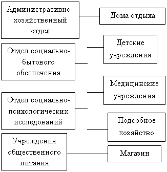 Отделы кадров не являются ни методическим, ни информационным, ни координирующим центром кадровой работы. Они структурно разобщены с отделами организации труда и заработной платы, отделами охраны труда и техники безопасности, юридическими отделами и другими подразделениями, которые выполняют функции управления кадрами. Для решения социальных проблем в организациях создаются службы социального исследования и обслуживания. Схема сложившейся организационной структуры системы управления персоналом организации приведена на рис.1.