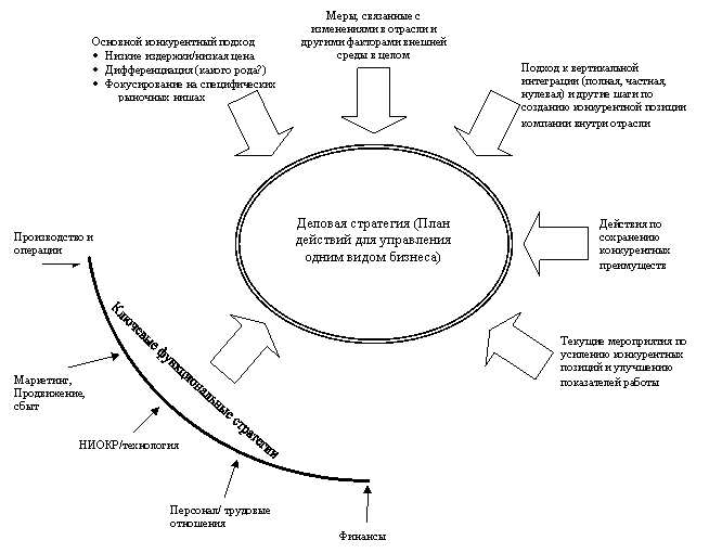 Деловая стратегия концентрируется на действиях и подходах, которые связаны с управлением, направленные на обеспечение успешной деятельности в одной специфической сфере бизнеса. Сущность деловой стратегии состоит в том, чтобы показать, как завоевать сильные долгосрочные конкурентные позиции.
