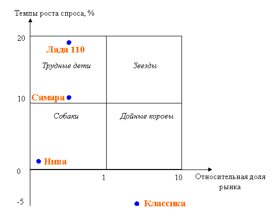 Продукцию компании ОАО «АвтоВАЗ» можно разделить на несколько рынков (по цене), каждый из которых отличается своим соотношением привлекательности и стратегического положения компании на нем: