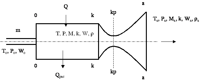 Т0, Та - температуры рабочего тела соответственно на входе в камеру и на выходе из сопла, К;