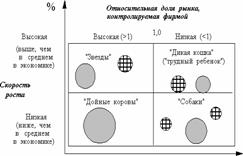 Определиться с портфельной стр. на корпоративном уровне поможет матрица БКГ (Звёзды, Дойные коровы, Вопросительные знаки, Собаки).