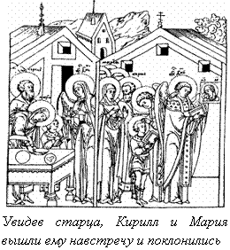 Увидев старца, они вышли ему навстречу и поклонились. Старец благословил их, и в доме приготовили трапезу для него. Но гость не сразу отведал пищи, но сначала вошел в моленную, то есть в часовню, взяв с собой освященного в утробе отрока, и начал петь часы2а, а отроку велел читать псалом. Отрок же сказал: «Я не умею этого, отче». Старец ответил: «Я сказал тебе, что с сего дня Господь дарует тебе знание грамоты. Читай слово Божие без сомнения». И случилось тогда нечтс удивительное: отрок, получив благословение от старца, начал стихо-словить29 Псалтирь очень внятно и стройно, и с того часа он хорошс знал грамоту. Над ним сбылось пророчество премудрого пророке Иеремии, сказавшего: «Так говорит Господь: Вот, Я дал слова Moi. в уста твои [Ис. 51. 16]». Родители же и братья отрока, увидев этс и услышав, удивились неожиданному его искусству и мудрости и прославили Бога, давшего ему такую благодать.