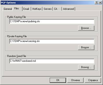 Аналогично нажмите кнопку «Обзор…»(Browse) для выбора папки размещения закрытого (секретного) ключа - secring.skr