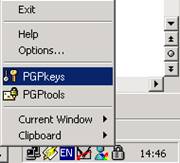 (Замỏк) и выберите PGPkeys. (см. рисунок слева)