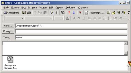 Теперь Вы можете присоединить этот файл к электронному письму и отправить его. Только после этого Вам могут послать кодированное письмо, которое Вы сможете прочитать.