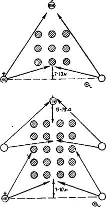 Колонны осужденных должны двигаться по правой стороне дороги. Конвоирование пешим порядком по улицам населенных пунктов (кроме лесных и сельских), а также на расстояние свыше 2 км, в условиях плохой видимости, по неосвещенным маршрутам запрещается. В ночное время во избежание несчастных случаев караул должен иметь сигнальные фонари, а в дневное время — сигнальные флажки. (рис. 2)