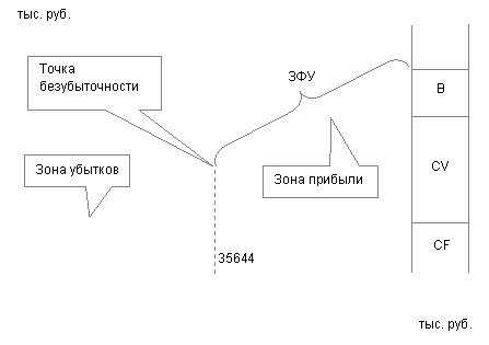 Рисунок 4 – График безубыточности ОАО АФ «Вымпел» на конец 2003г.