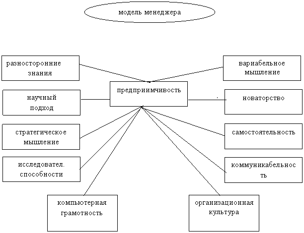 В условиях рынка нашим управляющим должны быть присущи такие качества как предприимчивость, самостоятельность, высокая квалификация, способность находить нестандартные решения. В обобщенном виде качества, необходимые менеджеру (модель менеджера) отражены на рисунке 3 (12 ). Реализация этих качеств объективно требует хорошей экономической подготовки и глубоких знаний в области научного управления. Этими проблемами и занимается менеджмент.