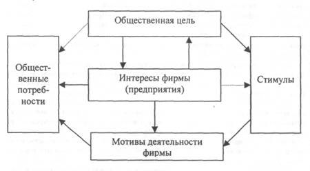 Интересы фирм, в свою очередь, оказывают обратное воздействие на общественную цель, а вот мотивы их деятельности прямо формируют общественные потребности, ибо находятся в состоянии взаимозависимости и обусловливают друг друга. Кроме того, интересы предприятий оказывают влияние как на формирование общественных потребностей (как их составная часть), так и на стимулы (потенциально и с определенным временным лагом, учитывая возможное несовпадение интересов предприятий с целями общества).