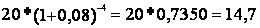 Рассмотрим условный пример: определить современную величину 20 млрд. рублей, которые должны быть выплачены через 4 года. В течение этого периода на первоначальную сумму начислялись сложные проценты по ставке 8% годовых.