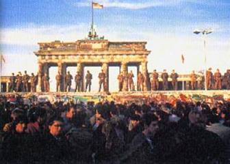 в дни падения Берлинской стены зрители перед стеной у Бранденбургских ворот 10 ноября 1989года