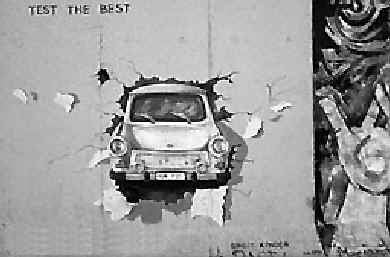 Рисунок на Берлинской стене, сделанный на рубеже 80—90-х годов. Гэдээровская машина, вроде “Трабанта”, пробивает стену и вырывается в западный мир. Прижилась ли эта малолитражка в мире “Мерседесов”?