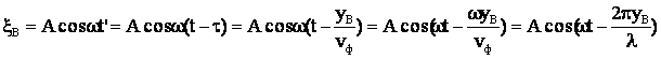 Аналогично уравнению колебаний точки В запишем уравнение колебаний любой точки среды, расположенной на расстоянии y от источника колебаний: