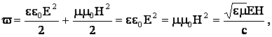 Объемная плотность энергии электромагнитного поля в линейной изотропной среде задается соотношением: