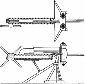 Аналогичные машины, но более крупные и предназначенные для стрельбы зажигательными стрелами, использовались в береговых батареях.