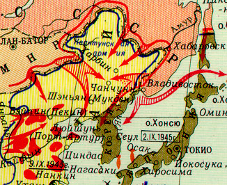 Советская делегация подтвердила, что СССР вступит в войну против Японии. 26 июля от имени глав правительств Великобритании, США и Китая была опубликована Потсдамская декларация 1945, содержавшая требование о капитуляции Японии. Япон. пр-во отклонило это . требование. |