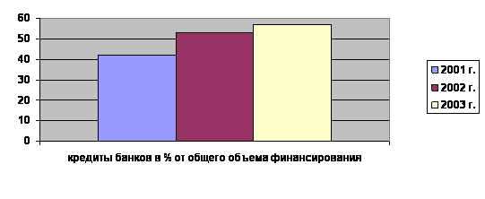 Этот источник хоть и достаточно велик, что вполне объяснимо и не требует специальных комментариев, но составляет менее половины от всего объема финансирования лизинговых сделок в нашей стране. Удельный вес кредитов банков в общем объеме финансирования за последние три года, по данным журнала «Эксперт-РА» составил:
