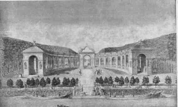 Интересные сведения о "воздушном" театре можно найти у профессора Г. Шределя, который писал: "Между прочими сочетаниями дерев в виде арок, ниш, колонн, стен и пр. находился Летний театр, кулисы которого состояли из настоящих деревьев и природы, а сцена и амфитеатр из земляной насыпи, между ними помещался оркестр в углублении".