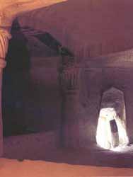 составляют подземные сооружения. Самый древний из них - мечеть Шакпак-ата, датируемый IХ-Х вв. н.э. По размерам она чуть больше шестиканатной юрты. Стены выложены ракушечником; колонны, поддерживающие потолок, украшены затейливым орнаментом. В этой каменной мечети укрывался суфий Шакпак-ата со своими учениками во время вражеских набегов. В последние годы жизни он стал затворником и больше не покидал свою подземную обитель. Говоря о святынях Мангыстау нельзя не упомянуть Шеркалу. Город-крепость, вырубленный в скале, он был известен еще в VIII-IХ веках во времена арабских завоеваний. Гора, превращенная человеком в неприступную крепость, напоминала льва, поэтому и вошла в историю как "город-лев".
