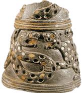 Арфа, труба, барабан - средства отпугивания злых духов. Магическую силу они получали в результате манипуляций жреца. Струны арфы изготавливали из жил быка. Трубу - из его рога. Барабан - из шкуры. Труба изображала голос Быка (бога) или Небесной коровы. Арфа, вероятно, озвучивала речения Быка.