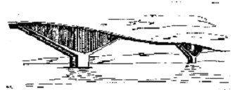 В этом проекте характер работы элементов сооружения получает полноценное архитектурное выражение. Основой художественного замысла является противопоставление свободно висящей ленты проезжей части мощным приопорным участкам, воспринимающим основные усилия от распора.