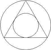 «Я потратил почти все лето на эту тяжелую работу, и в конце концов совершенно случайно подошел к истине». 9 июля 1595 г. — Кеплер скрупулезно зафиксировал эту дату, — решая с учениками какую-то геометрическую задачу, он начертил на классной доске равносторонний треугольник со вписанной в него и описанной около него окружностями (см. Рис.1). Внезапно его озарила мысль, которая явилась, по его мнению, ключом к разгадке тайны Вселенной. Прикинув отношение между радиусами окружностей, он заметил, что оно близко к отношению радиусов круговых орбит Сатурна и Юпитера, как они были вычислены Коперником (здесь отношение R : r = 2 : 1, а отношение RС : RЮ = 8.2 : 5.2, по Копернику). В дальнейшем ход рассуждений был таким: Сатурн и Юпитер — «первые» планеты (считая по направлению к Солнцу) и «треугольник — первая фигура в геометрии. Немедленно я попытался вписать в следующий интервал между Юпитером и Марсом квадрат, между Марсом и Землей — пятиугольник, между Землей и Венерой —шестиугольник .». Во времена Кеплера было известно только шесть планет Солнечной системы, наблюдаемых невооруженным взглядом: Меркурий, Венера, Земля, Марс, Юпитер и Сатурн. Планета Уран была открыта В. Гершелем много позже — в 1781 г., Нептун открыт астрономом Галле и математиком Леверье в 1846 г., Плутон был обнаружен только в 1930 г.
