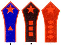 16 января 1919 года РВСР приказом № 116 ввел нарукавные знаки различия командного состава: под красной звездой красные суконные треугольники для младшего комсостава, квадраты для среднего и ромбы для старшего и петлицы с расцветкой по родам войск: