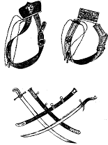 АТАМАНСКАЯ САБЛЯ – обычно украшенная, старинная, тоже один из символов атаманства. Лично ему не принадлежала, а была у него на хранении на время правления. Могла храниться в церкви и надеваться на Круге по праздникам.