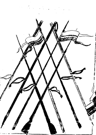 ПОСОХ – символ старости и мудрости. Все члены совета стариков сидели, опершись о посох. Посохами наделялись судьи, ходатаи по делам церковной общины, паломники. Поднятый посох означал призыв Круга к молчанию. Шапка, поднятая на посохе, - особо важное сообщение.