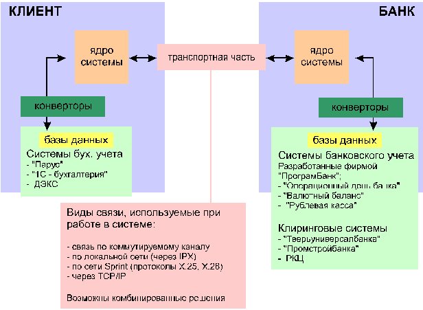 Рис. 1. Общая схема работы системы "банк-клиент" фирмы ИНИСТ |