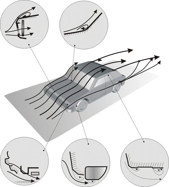 В целом поле потока вокруг автомобиля изучено недостаточно. Поэтому картину обтекания автомобиля можно представить только благодаря суммированию отдельных сведений по этому вопросу. Они получены в результате измерений скоростей потока, распределения давления и наблюдения обтекания как на поверхности автомобиля, так и в прилегающем к нему пространстве.